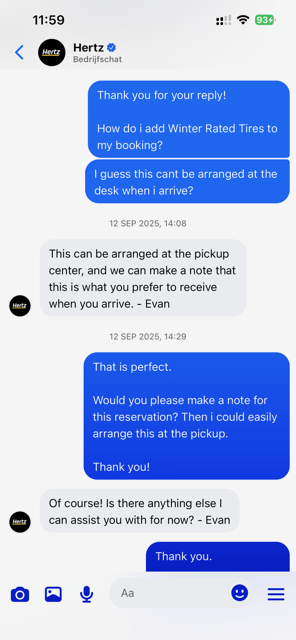 Hertz Facebook chat ©Rondreizen Noord Amerika